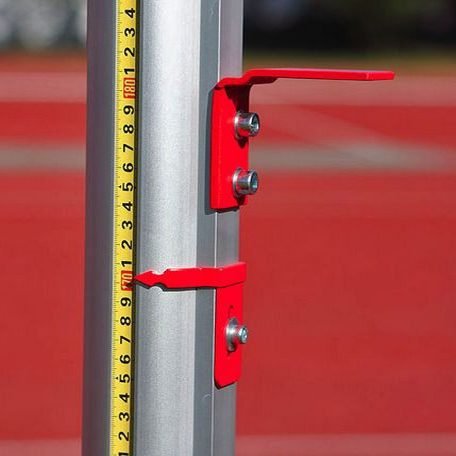 Стойката за висок скок е изработена от специален алуминиев, анодизиран профил. Основата е стоманена, кръгла, прахово боядисана. Регулиране на височината 75-200см.