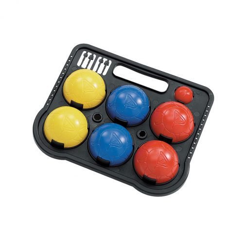 Комплектът съдържа 6 броя топки изработени от PVC, стойка-държач и кошонет. Топките са в различни цветове: 2 жълти, 2 червени, 2 сини. Благодарение на държача, спокойно може да пренасяте топките.