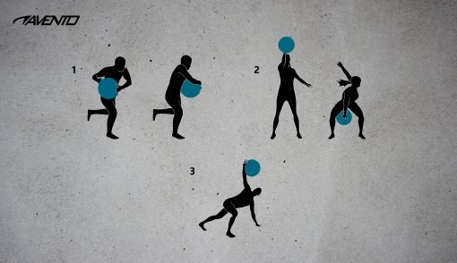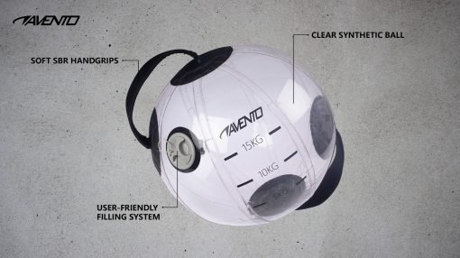 Водната гимнастическа топка Avento е нов иновативен продукт, който изисква повече концентрация при третировките отколкото конвенционална медицинска топка, тъй като нестабилността на водата вътре, постоянно активира мускулите за осигуряване на баланс.
