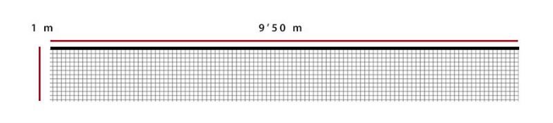 - Размери: дължина 9,5 м, височина: 1 м